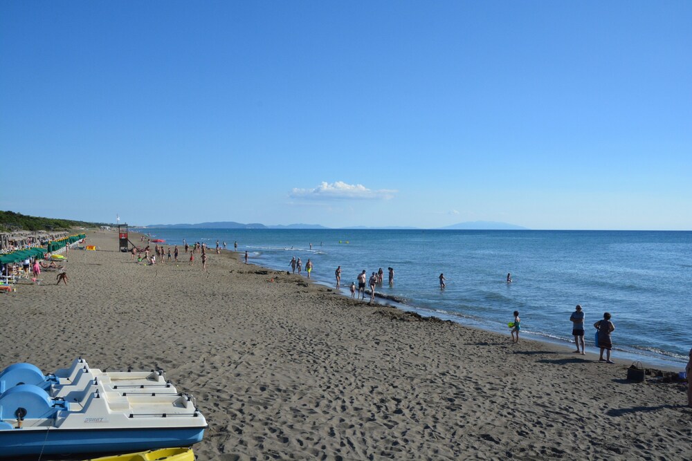 Marina di Castagneto bietet einen wunderschönen langen Sandstrand. Es hat einen Garten mit Sonnenliegen Sesseln und Swimmingpool. Die feinen weißen Sandstrände in San Vincenzo Vada und dem Golf von Baratti wechseln sich ab mit den dunklen kiesigen Stränden von Cecina Bibbona und Marina di Castagneto.