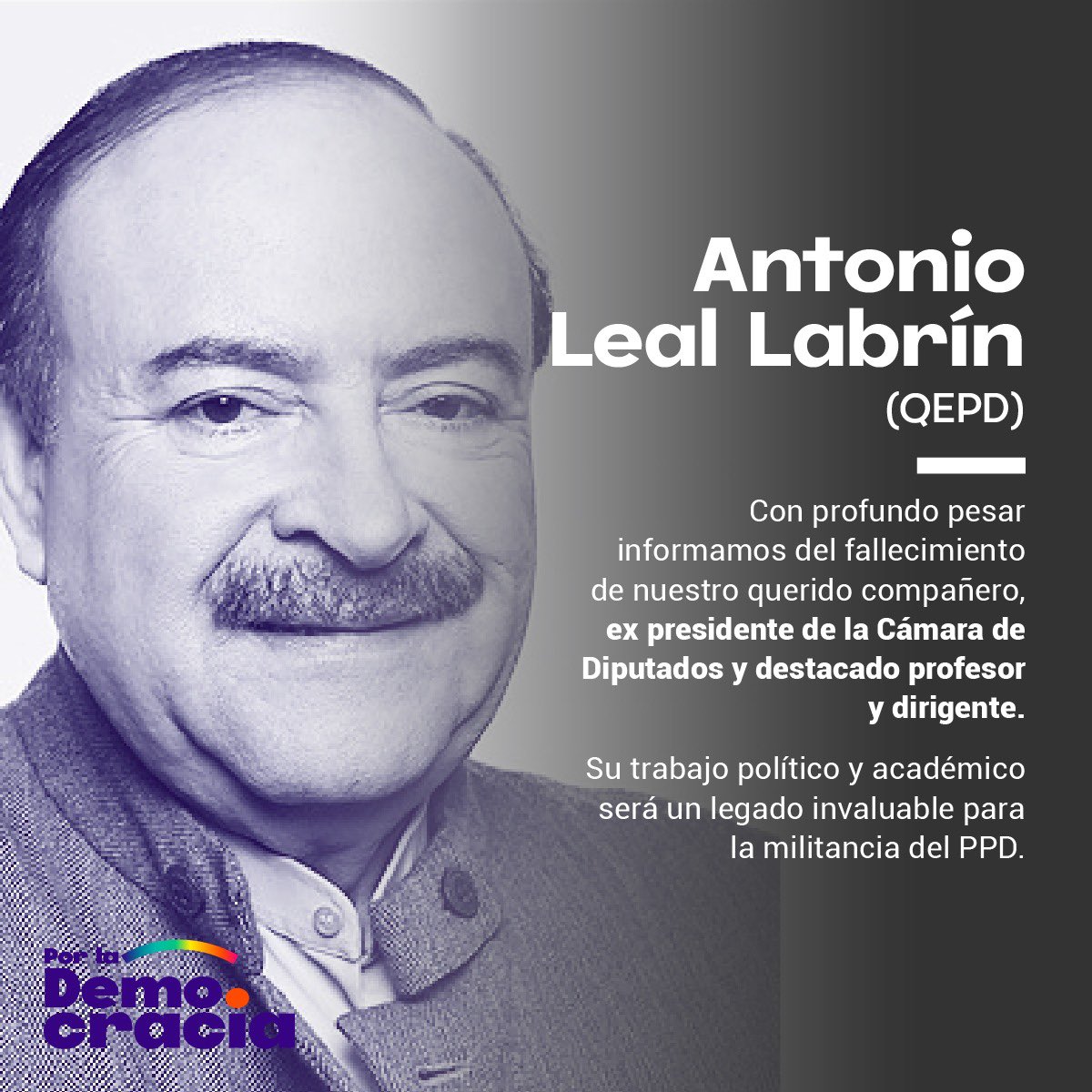 Sociólogo académico y político del Partido por la Democracia. Pronunciation of Antonio Leal Labrín with and more for Antonio Leal Labrín. The president of the PPD reported on the death of former Democratic Party representative Antonio Leal Labrín this Wednesday.