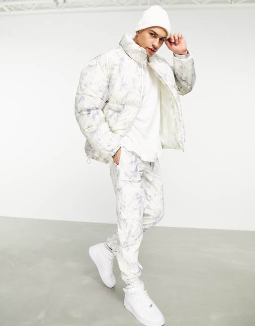 Topman Recycled Puffer Jacket In Tie Dye Print Asos